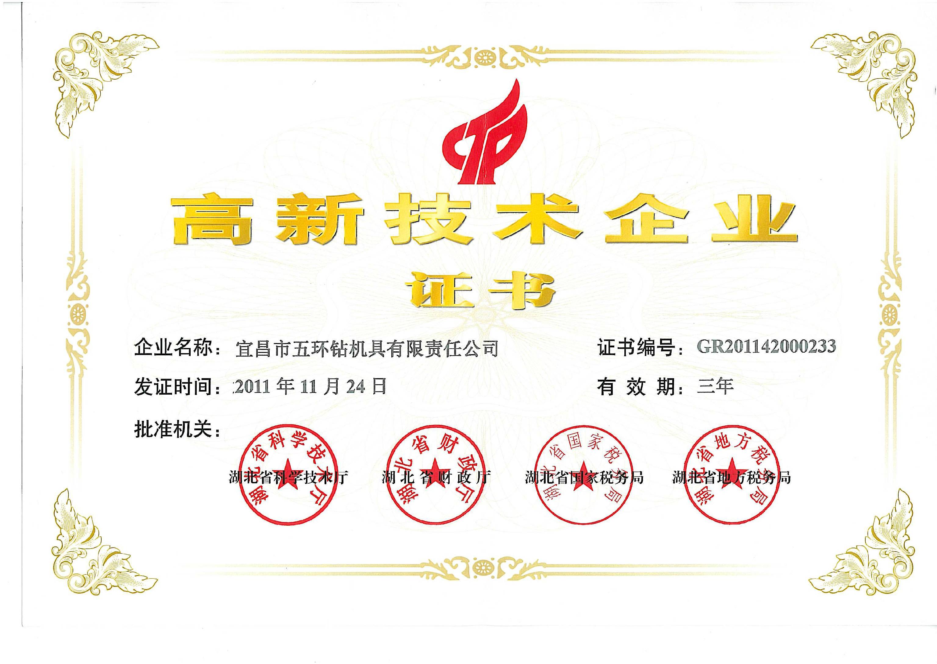 Certificate of High and New Technology Enterprise