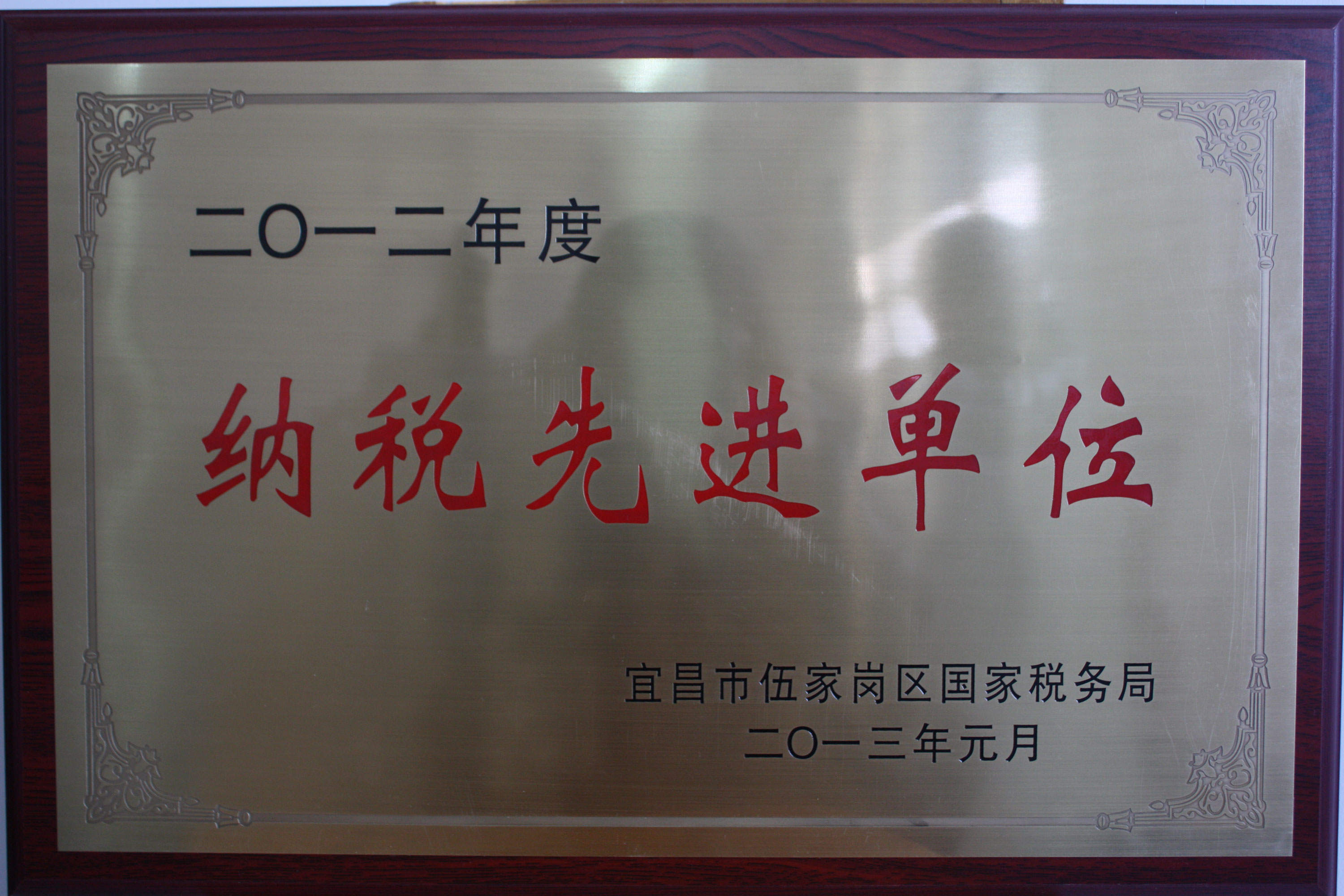 Wujiagang Top Tax Payer of 2012