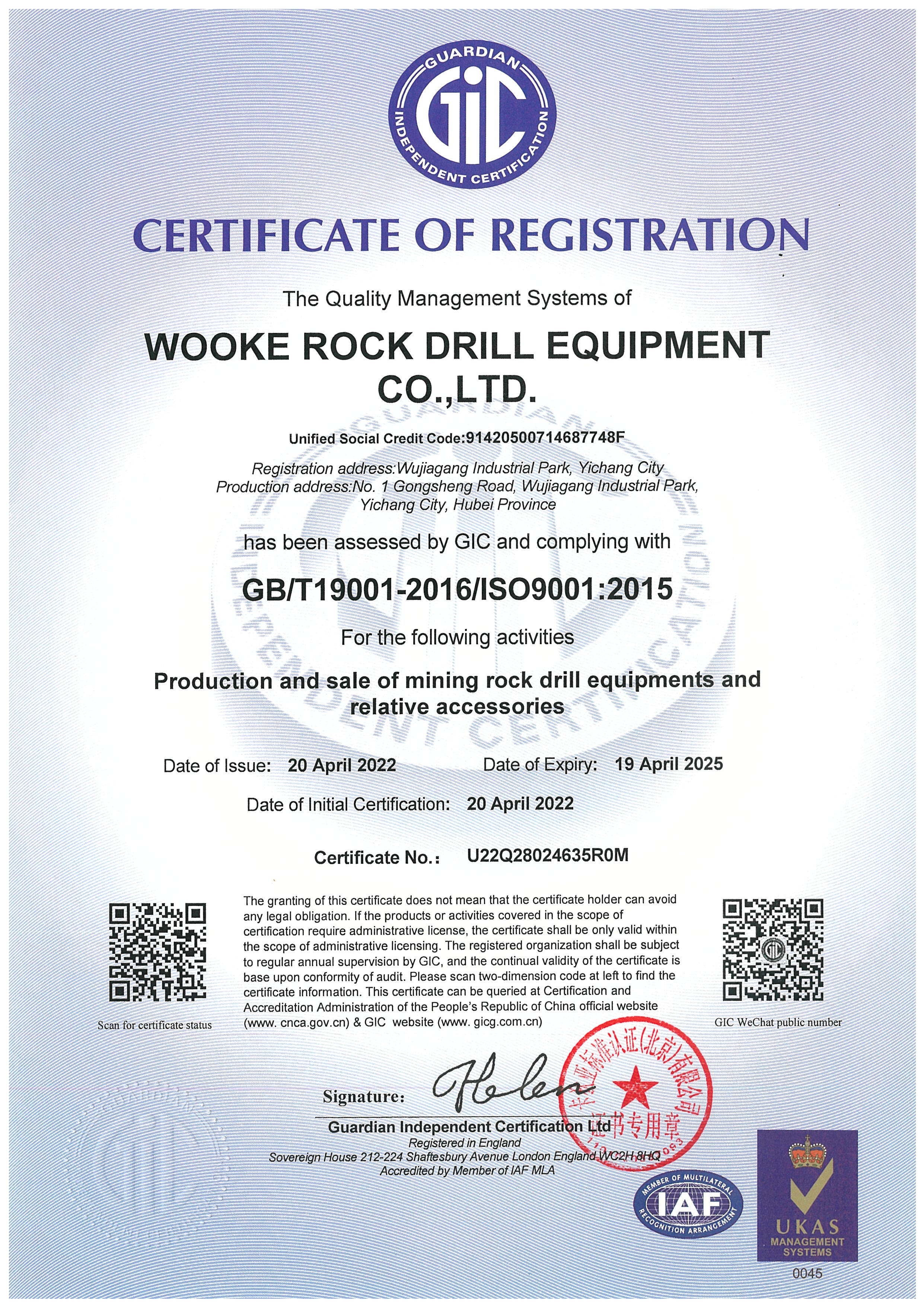 Since its establishment in 1995, WOOKE ROCK DRILLING TOOL Co., LTD (WOOKE) has been known as one of the National High-tech Enterprises with its self-owned Intellectual Property and strong R & D capability, and its high reputation as a member of China Rock-Drill Steel and Tools Association. Wooke has been accumulating 27 years' experience in designing, developing, and manufacturing top-class Rock Tools and proving leading-edge technology and services in this industry.